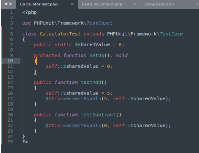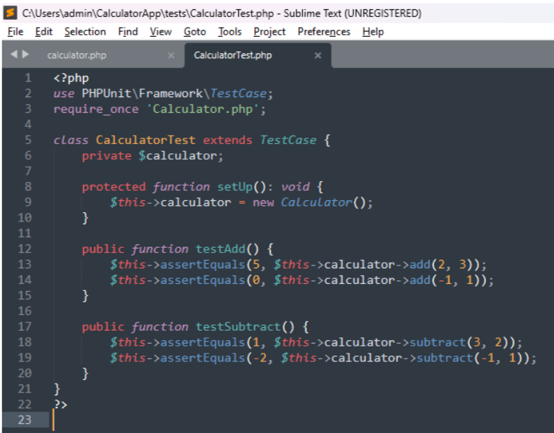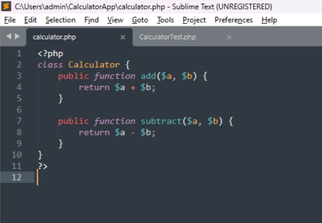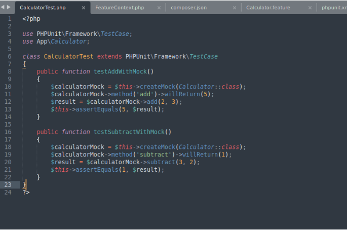 2. Inside the tests folder, create a file named CalculatorTest.php: