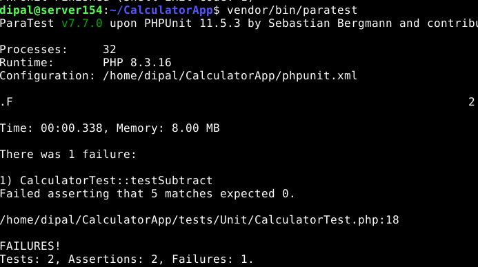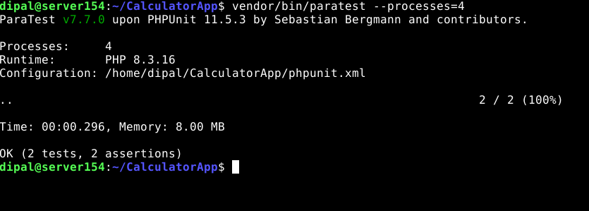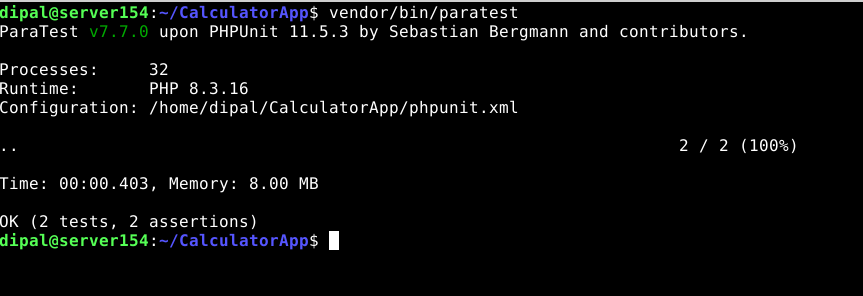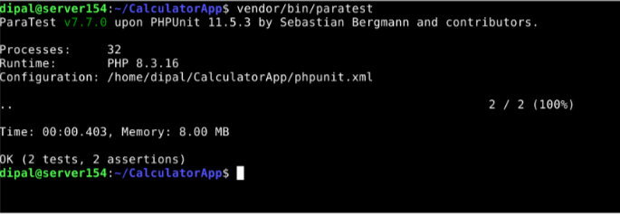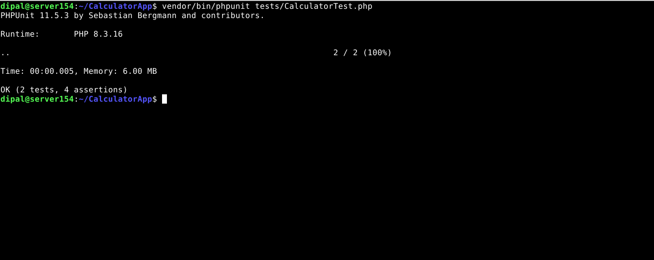 CalculatorApp/ βββ Calculator.php/Β Β Β Β Β Β Β Β Β Β Β Β βββ tests/Β Β Β Β β Β βββ CalculatorTest.php/ βββ composer.json βββ composer.lock βββ vendor/