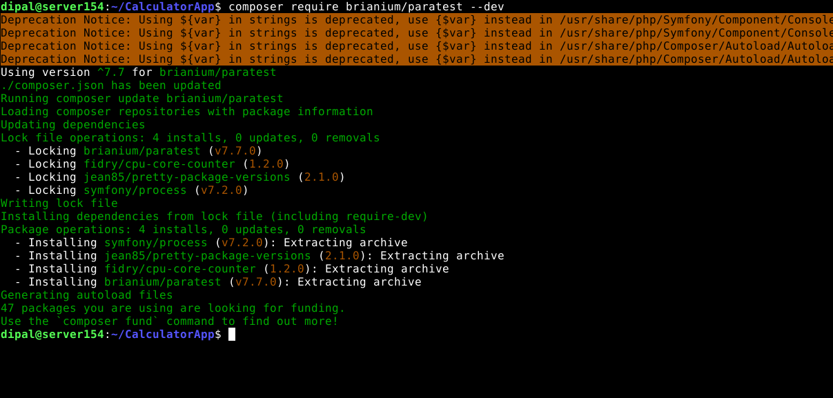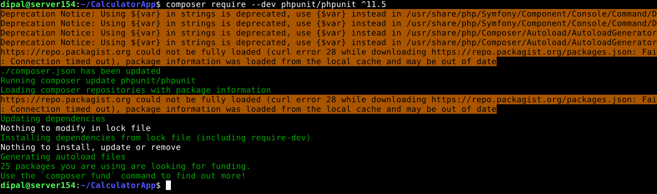 - Description: When running tests, PHPUnit might show warnings or errors about deprecated methods or functions.