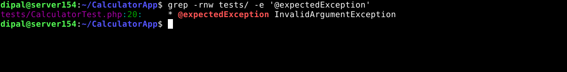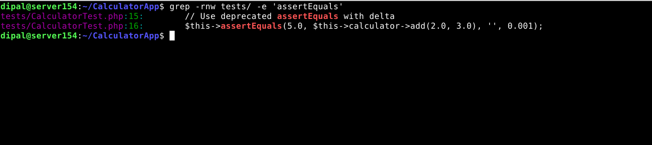 grep -rnw tests/ -e 'assertEquals'grep -rnw tests/ -e '@expectedException' - After identifying the deprecated methods, fix the deprecated methods in the code