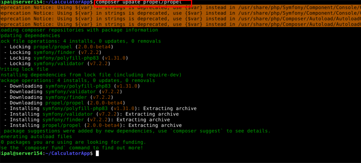 { Β Β Β Β "require-dev": { Β Β Β Β Β Β Β Β "phpunit/phpunit": "^11.5" Β Β Β Β }, Β Β Β Β "require": { Β Β Β Β Β Β Β Β "propel/propel": "^2.0" Β Β Β Β }, Β Β Β Β "autoload": { Β Β Β Β Β Β Β Β "psr-4": { Β Β Β Β Β Β Β Β Β Β Β Β "App\\": "src/" Β Β Β Β Β Β Β Β } Β Β Β Β }, Β Β Β Β "minimum-stability": "dev", Β Β Β Β "prefer-stable": true }composer update propel/propel