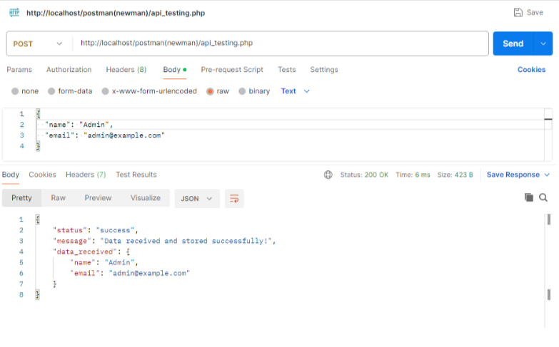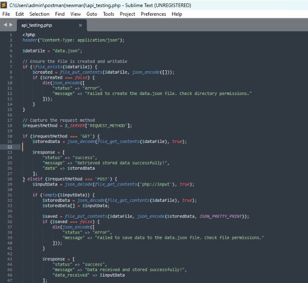 Weβll write a simple API in PHP. This API will respond to HTTP methods like GET and POST. For demonstration purposes, the API will return a greeting message for a GET request and echo back data sent in a POST request.