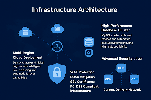Deployed across 4 global regions with intelligent load balancing and automatic failover capabilities.