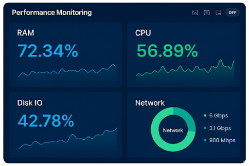 24/7 monitoring with custom alerts and detailed performance analytics dashboard.