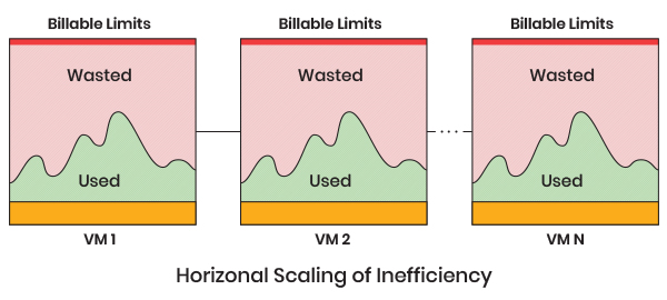 When you expand your infrastructure by adding more VMs, the problem worsens, as each VM may have unused capacity, further reducing efficiency.