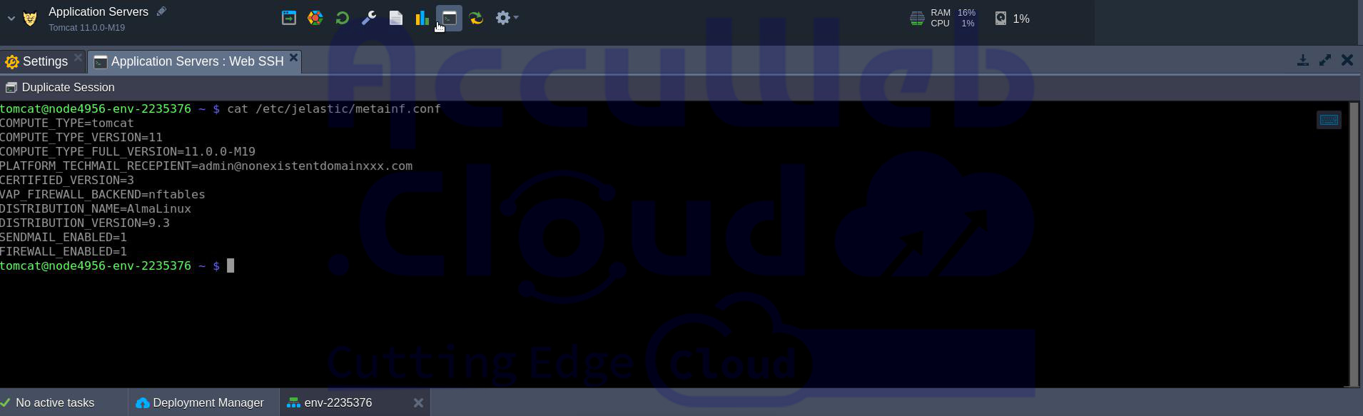 Step 1. Using the Web SSH option straight from the platform dashboard is the simplest way to gain SSH access to a node. Simply click on the button that corresponds to the node you require. After you’re connected, make sure the container firewall is turned on by looking in the /etc/jelastic/metainf.conf file.