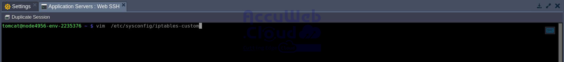 Step 2. Then, using a text editor such as vim, you will need to alter the /etc/sysconfig/iptables-custom file.