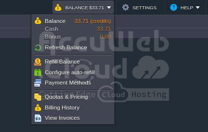 1. Balance: Displays the current account balance (both Cash and Bonus). Clicking on this section opens the Refill Balance tab.