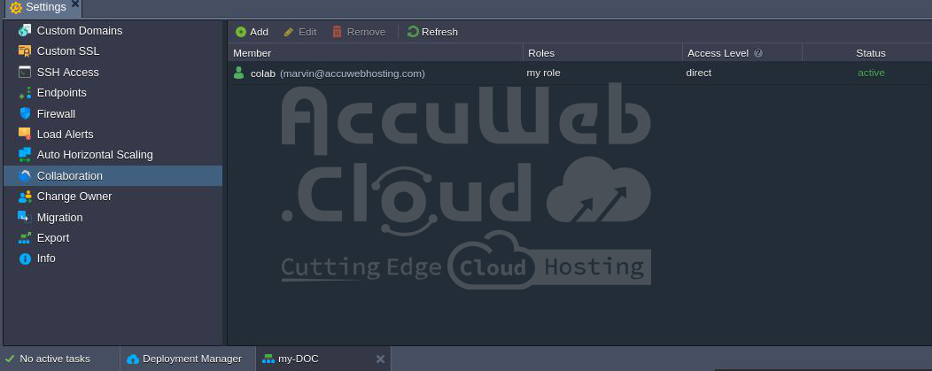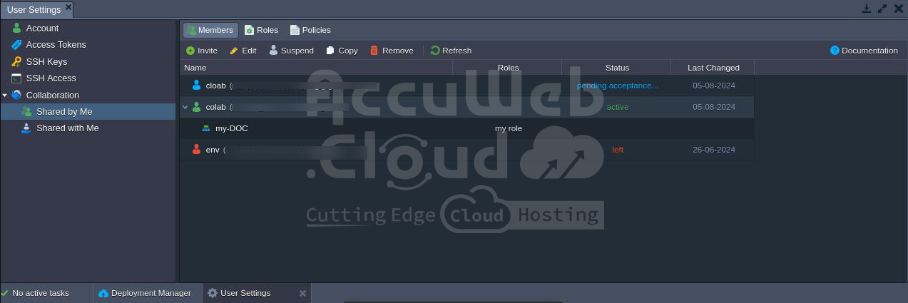 Step 8. In the Collaboration section, you can view and manage the list of accounts with access to the current environment.
