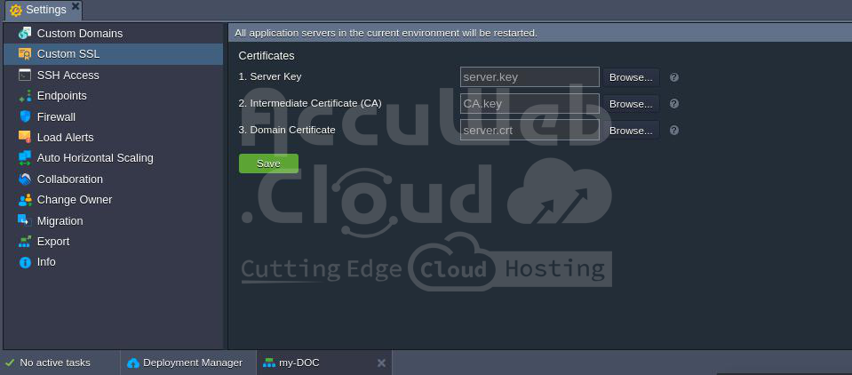 Step 2. Choose Custom SSL and upload the required files to apply your custom SSL certificate.