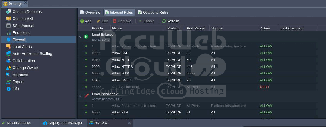 Step 5. The firewall section lets you set Inbound and Outbound Rules to manage access to your containers. These rules enable you to specify which connections should be accepted and which should be blocked.