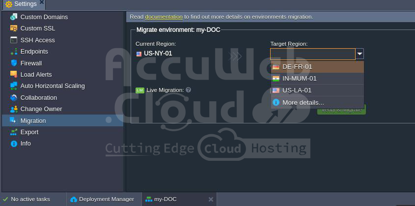 Note: The availability of this option and access to each specific environment region depend on your hosting provider’s settings.