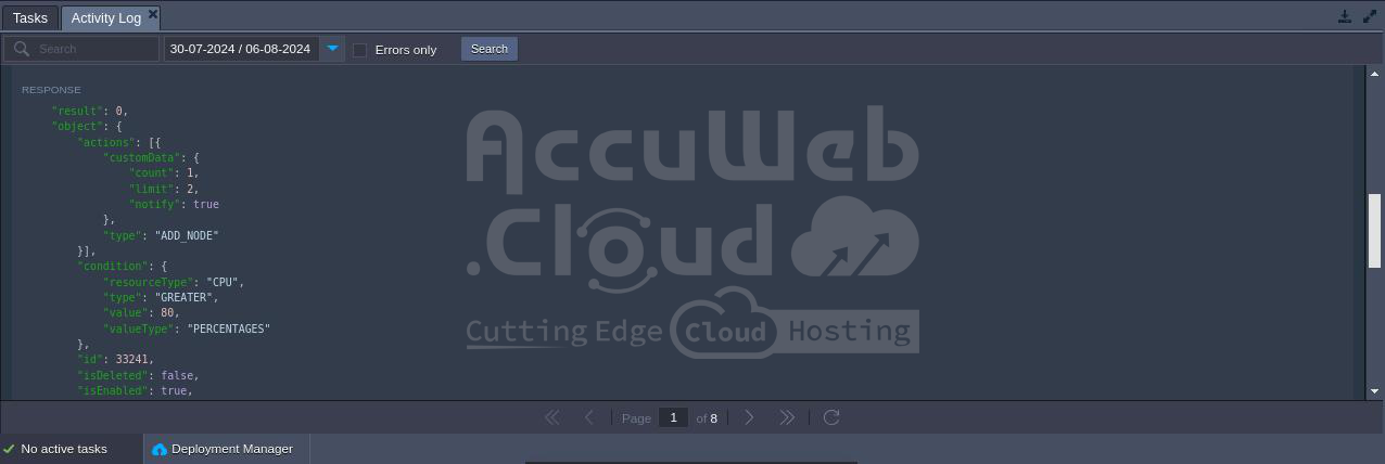 • Select Errors only to filter out successfully executed operations and display only those that encountered issues.