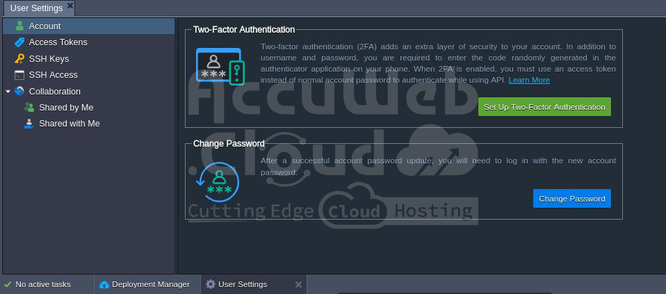 Step 1. In the Account section, you can manage two-factor authentication and change your account password.