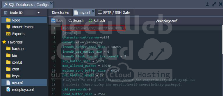 Note: You have the option to change any settings in the /etc/my.cnf file, even those that are managed by the platform’s Smart Auto-Configuration, by specifying them in the /etc/mysql/conf.d/custom.cnf file instead.
