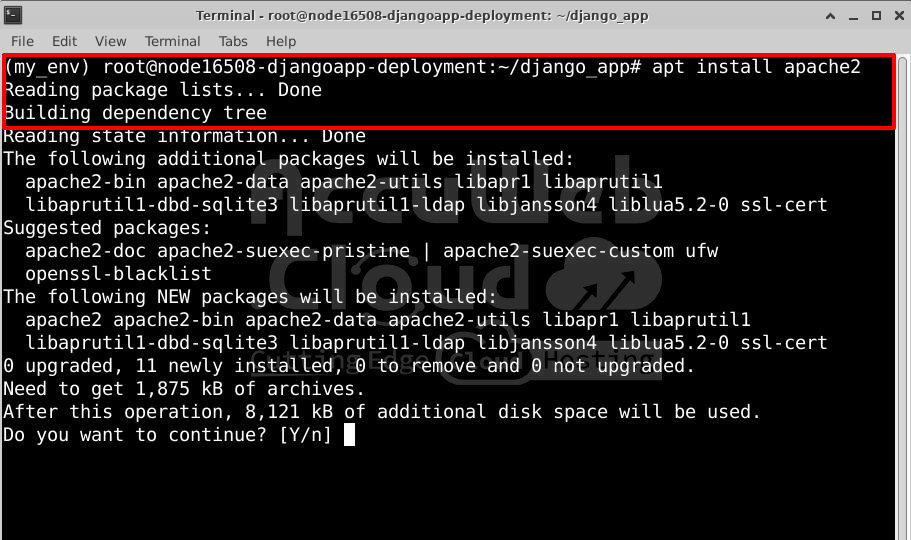 After you confirm, Ubuntu will install Apache and everything it needs to run.