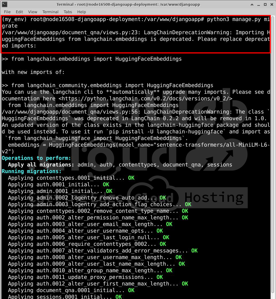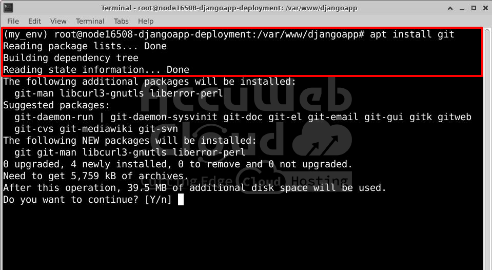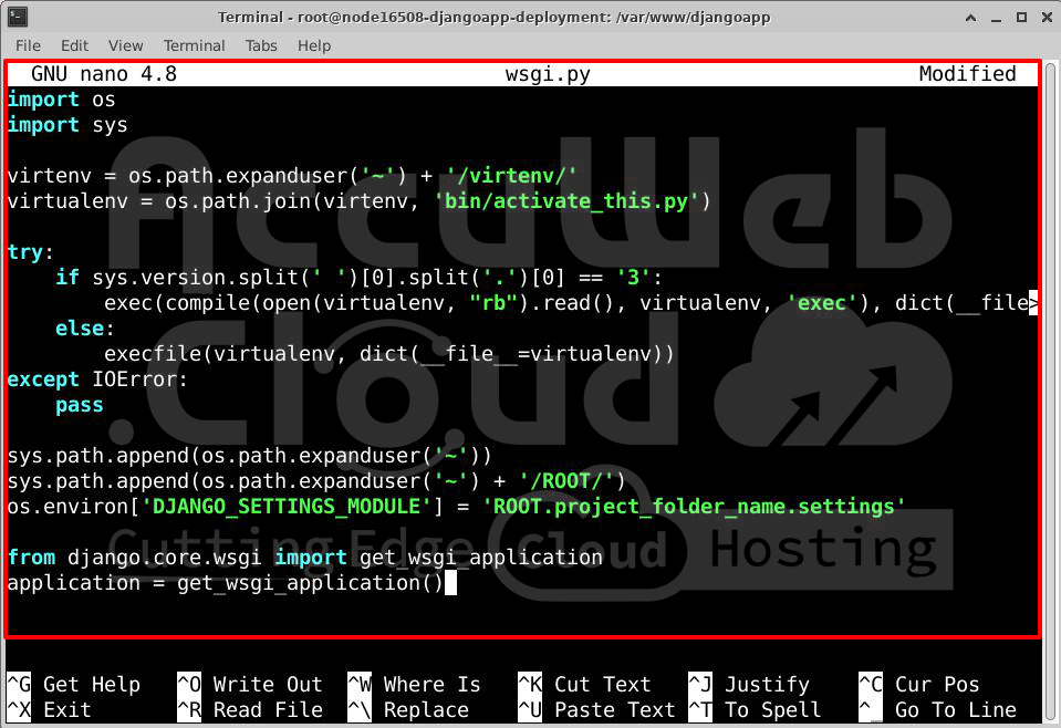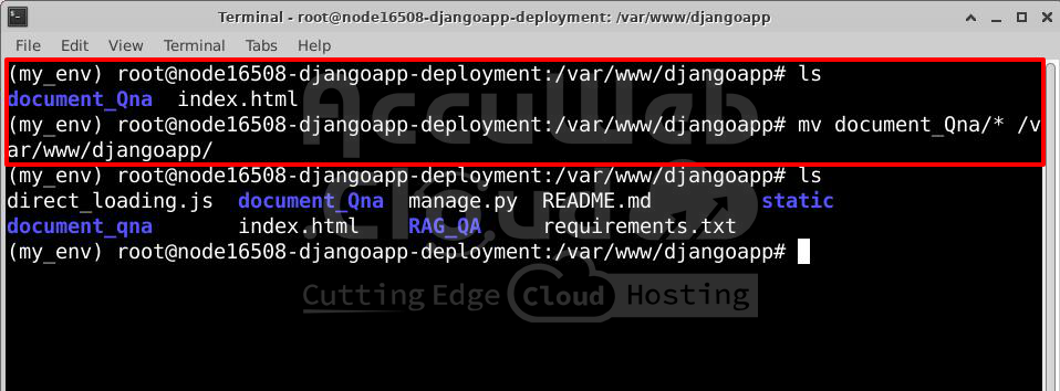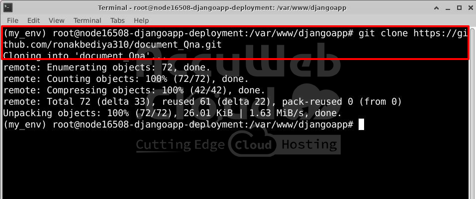 After cloning, move all the project files into the deployment folder (/var/www/djangoapp/):