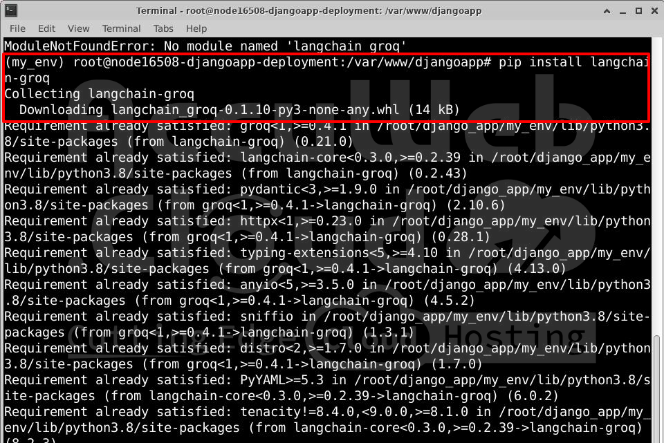 Run the following command in the terminal to add Groq’s LLM with LangChain in your virtual environment.