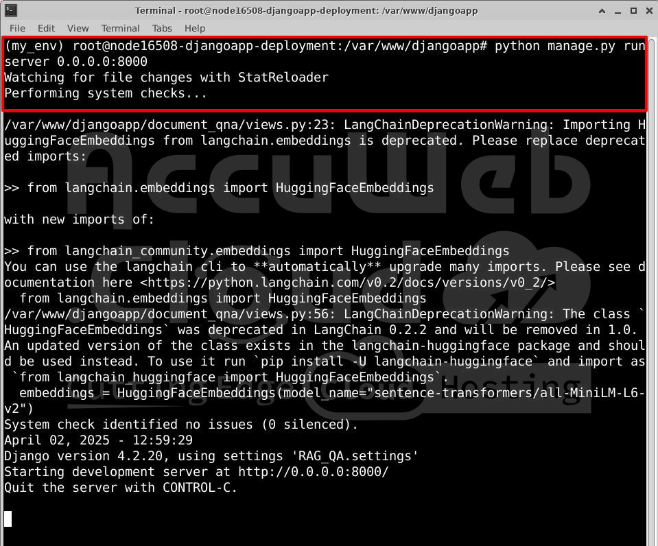 A virtual environment lets you create a separate space on your server just for one Python project. This way, every project can have its own tools and libraries, and they won’t interfere with each other.