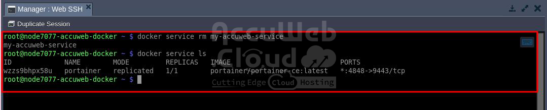 If you don’t have a Docker Swarm cluster yet, follow the instructions to set it up in minutes and connect to your swarm using your preferred method, such as Portainer GUI or AccuWeb.Cloud SSH Gate.