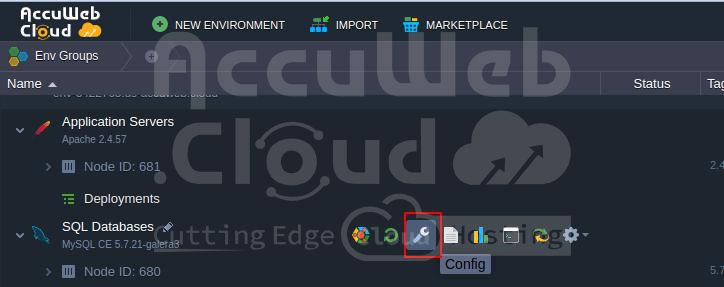 Steps 1. To begin, navigate to mysql-master-1 and select the MySQL Config icon for your environment.