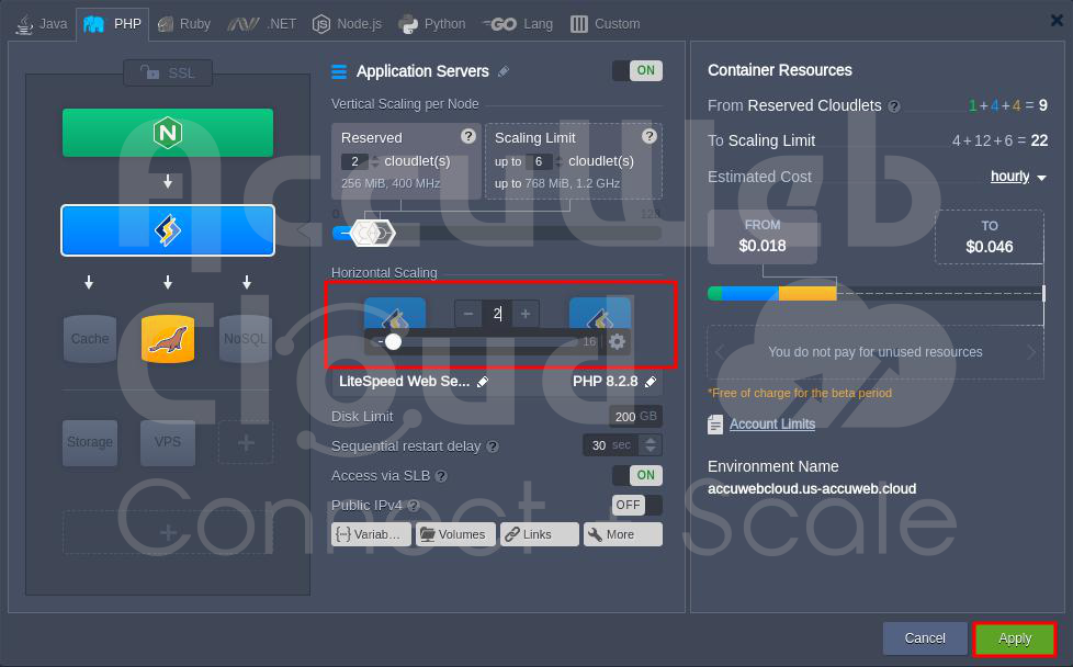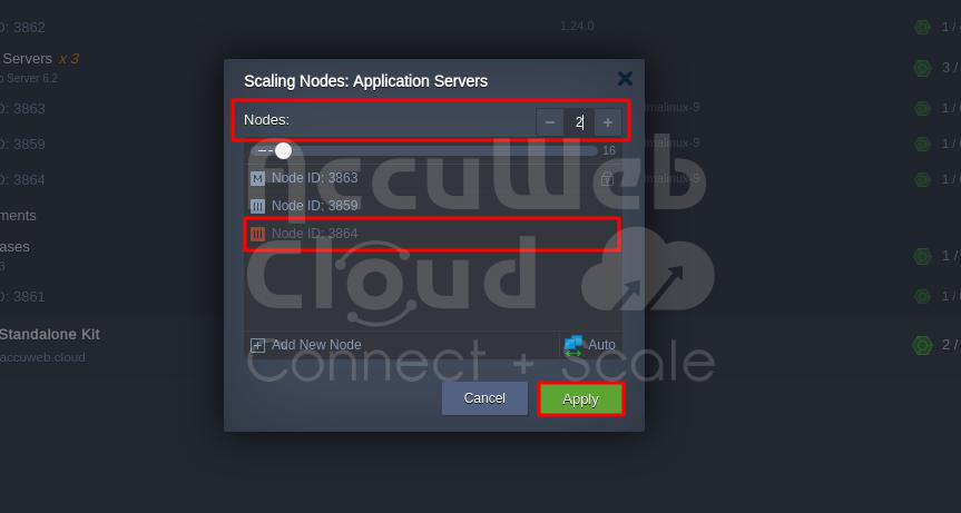 Click on the minus (-) button to reduce the node in the application server. You can see that we have reduced the node from 3 – 2 in the Application Server. After then click on the Apply button to save the changes.