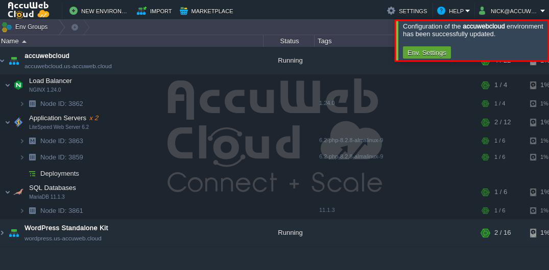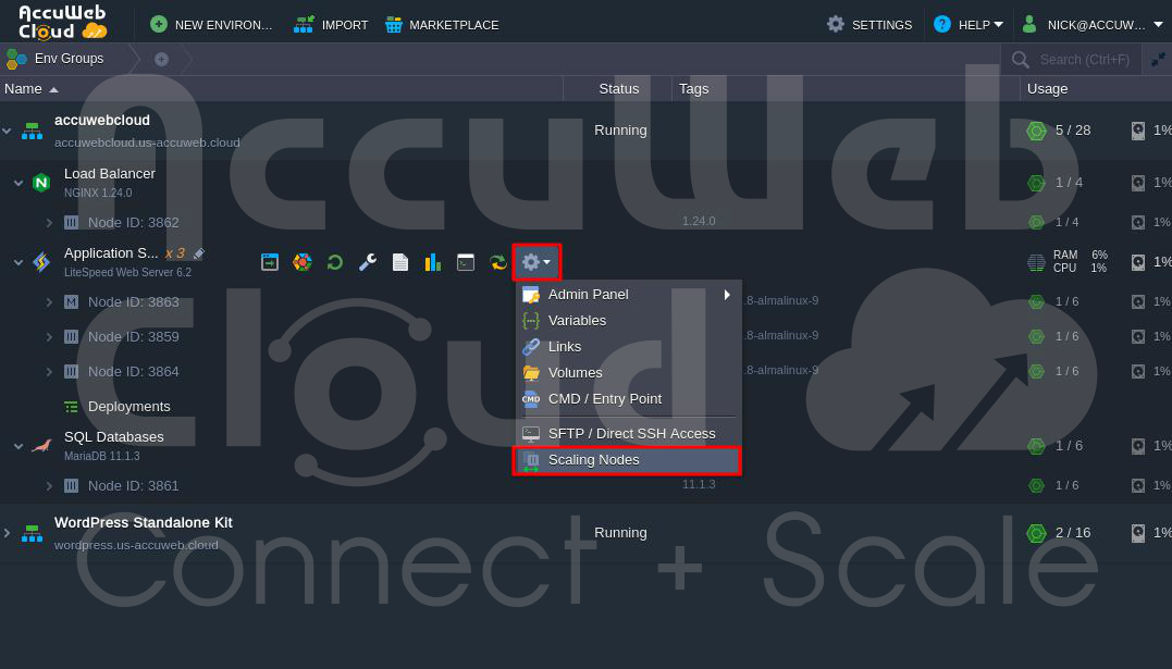 Step 2: Select the environment in which you want to reduce the node. Here, we have selected accuwebcloud.us-accuweb.cloud as an example.