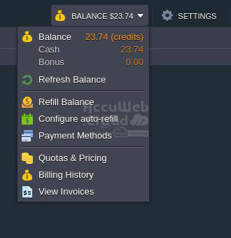Navigate to Balance > Quotas & Pricing menu item for more details.
