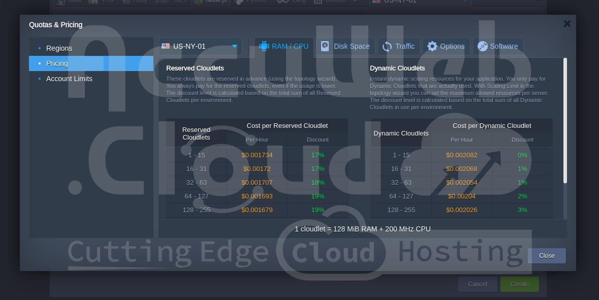 - Dynamic cloudlet: Dynamic cloudlet pricing depends on consumption per hour and the discount count on the total number of dynamic cloudlets.