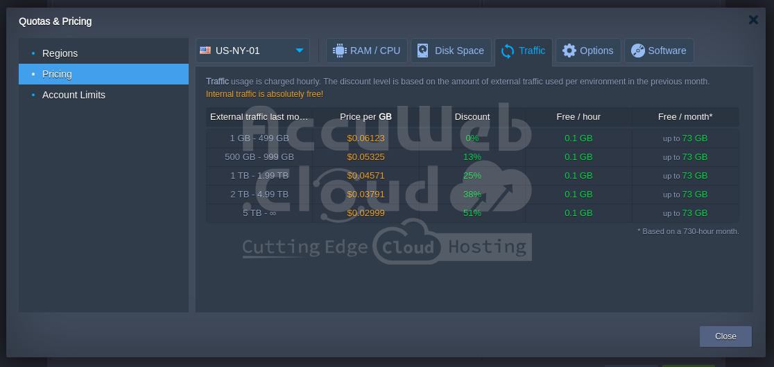 There are no fees for internal traffic; it is entirely free. You can see discount percentages according to hourly and monthly.