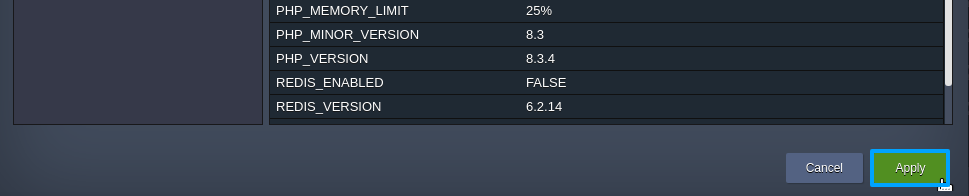 All PHP CACHE_MEM_LIMIT + Defines the portion of RAM, which should be reserved for the built-in Redis cache server, 10% of container total RAM by default.