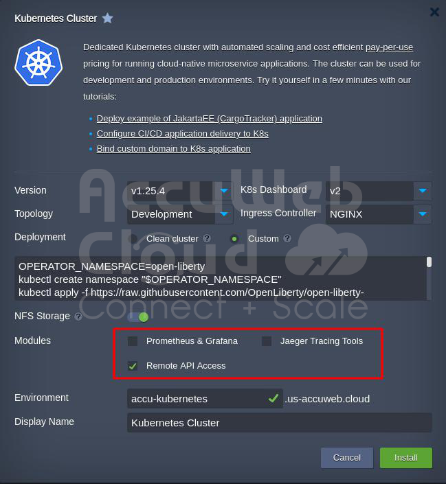 Step 4: Click “Install” to install the Kubernetes Cluster.