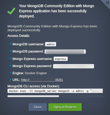 - To open Mongo Express in your browser, kindly copy the URL from the post-installation pop-up and paste it into the browser. Now enter the login credentials from the last step.