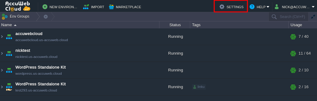 Step 1: Click the Settings button in the top-right corner of the dashboard.