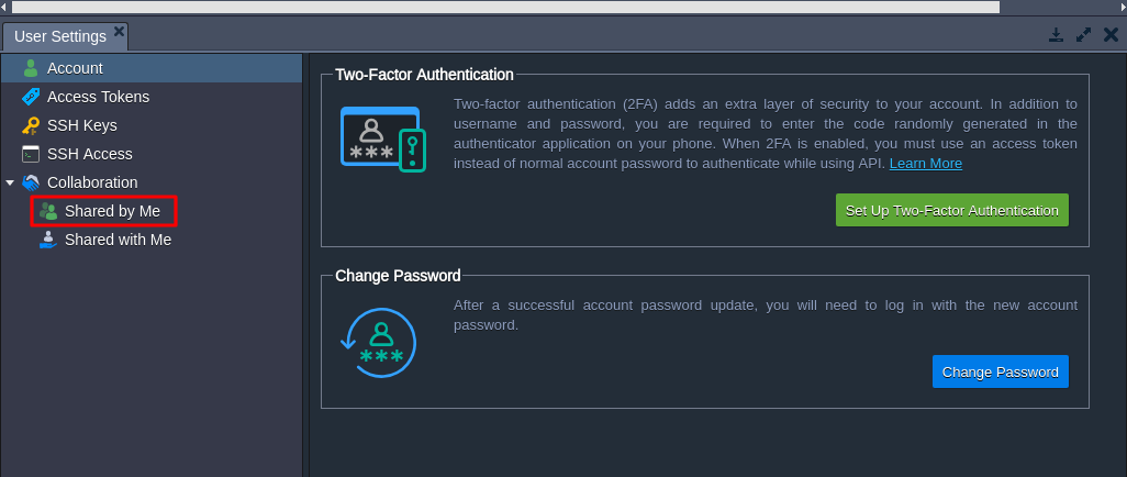 Step 3: Under the User Settings tab, go to the Collaboration and click on the Shared by Me option.