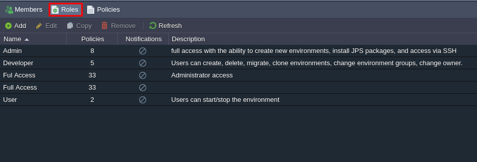 - Direct: These roles are given specifically to the environment and override any lower-level roles.