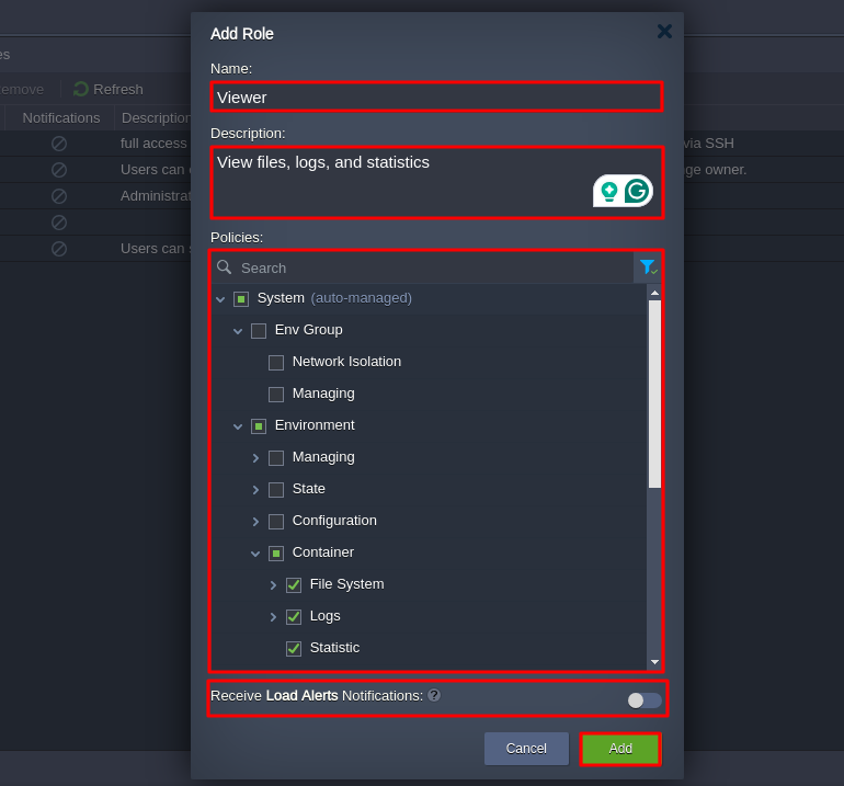 - Receive Load Alerts Notifications: Turn this on if you want people with this role to get notifications about shared stuff.