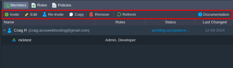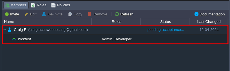 Step 4: The invited member will appear in the list as pending acceptance. Now, you wait for them to accept the invitation. Any changes to the invitation will be shown in the Members tab, and you’ll get an email notification about their decision.