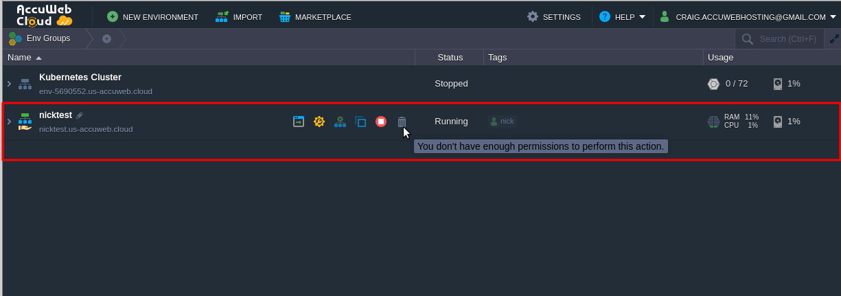 - User – Can do simple stuff like start/stop environments and restart containers.