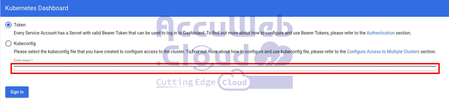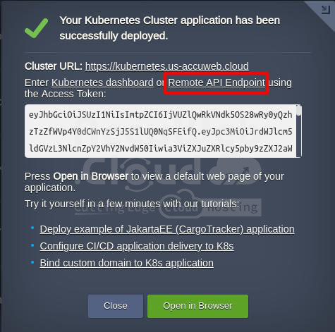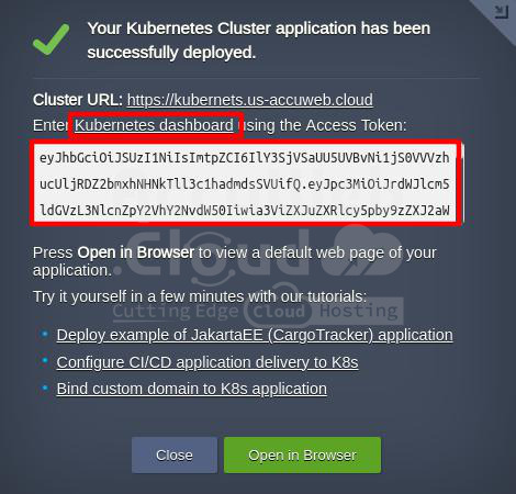 Use the Access Token and follow the Kubernetes dashboard link to manage your Kubernetes cluster.