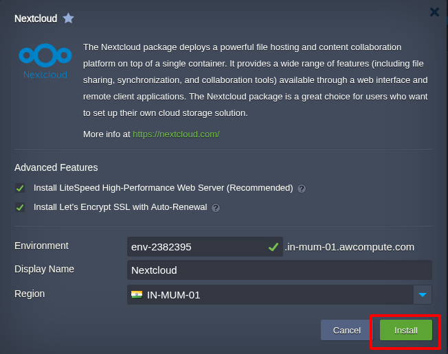 Part 1: Install Nextcloud from AccuWeb.Cloud Marketplace