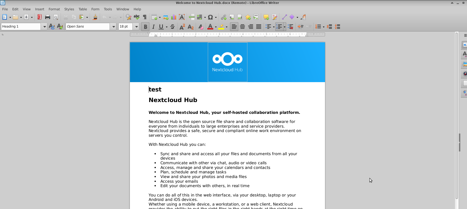 Nextcloud with LibreOffice lets you store files securely in your own cloud while editing them locally using a full desktop office suite, with automatic synchronization and complete data ownership.