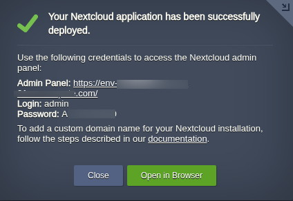 Note: Please check your inbox (and spam folder) for the Nextcloud login details.