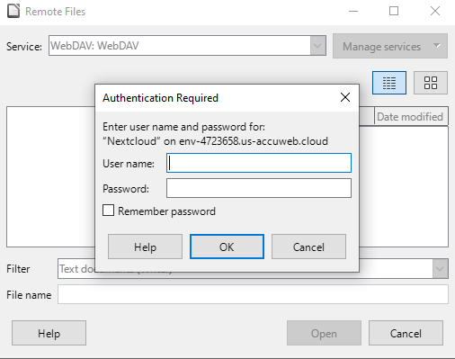 LibreOffice will prompt you to enter your Nextcloud username and password