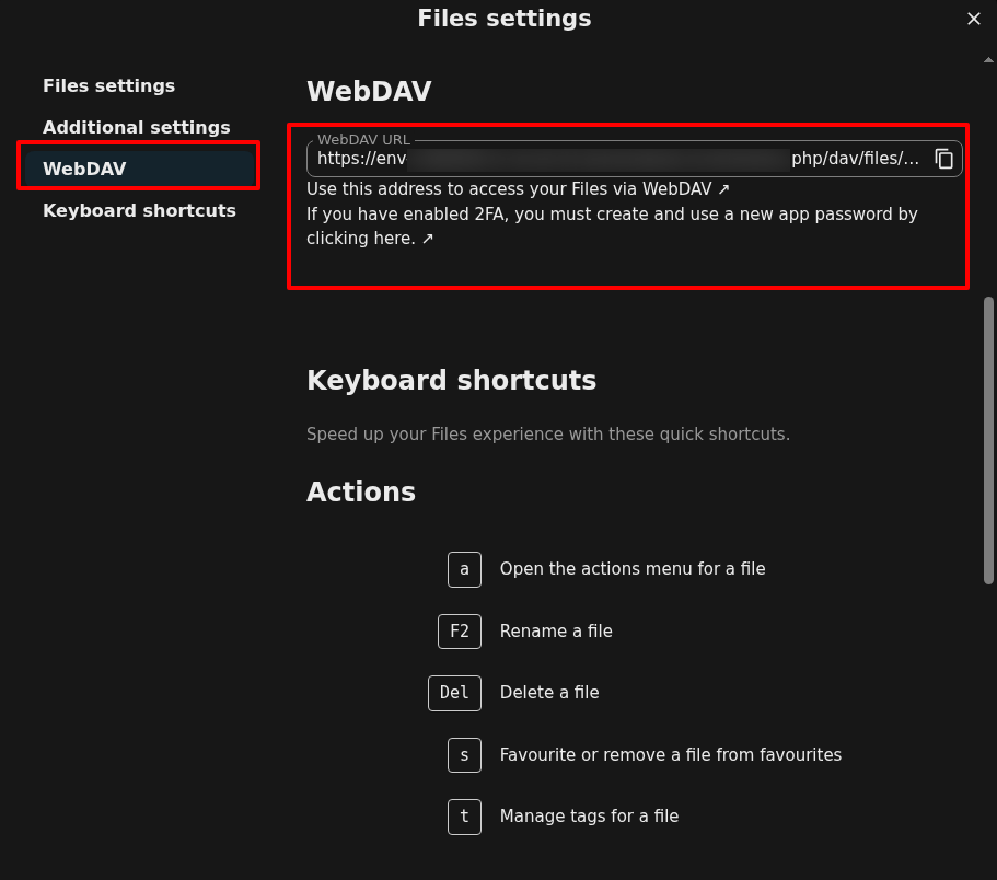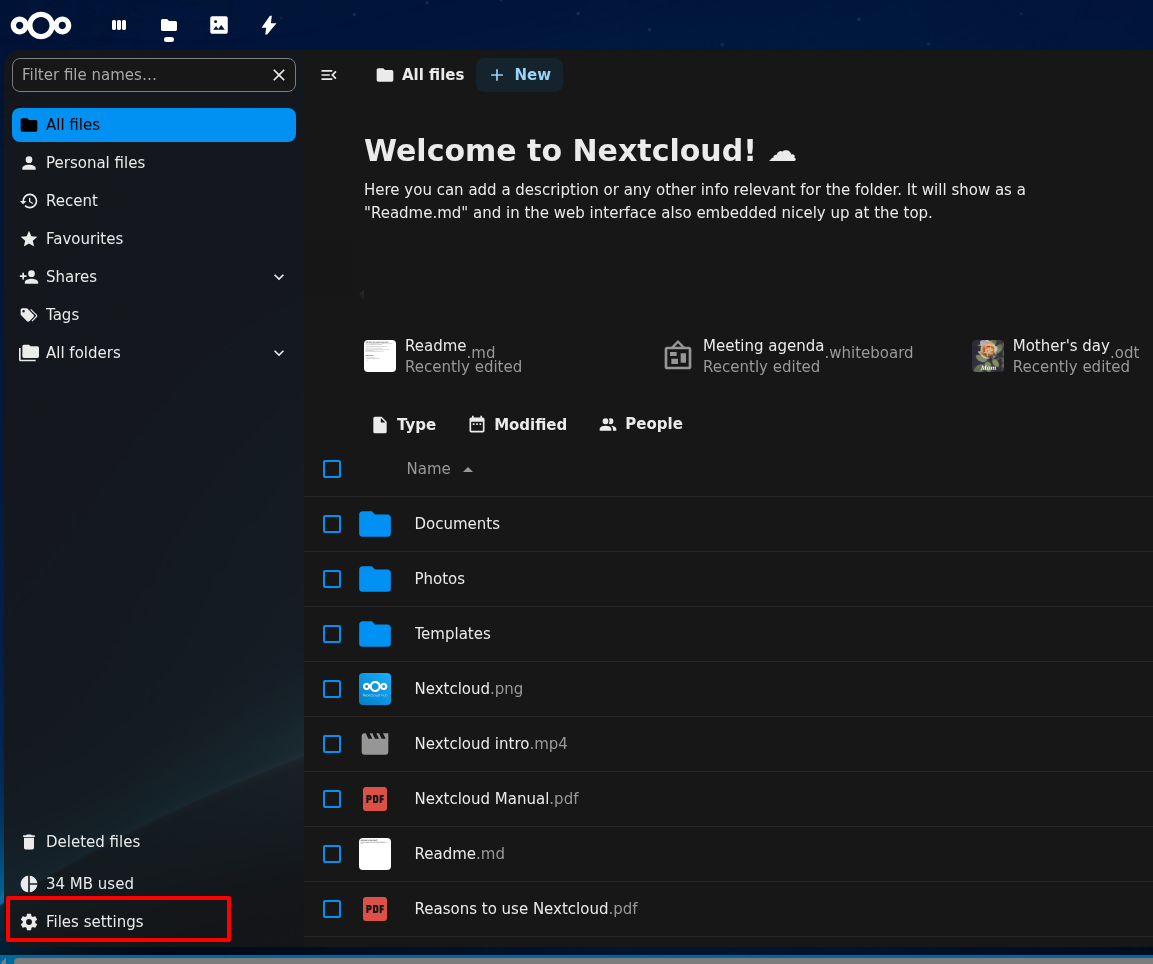 Important: All the steps below are performed on your local system, not inside the Nextcloud web interface.