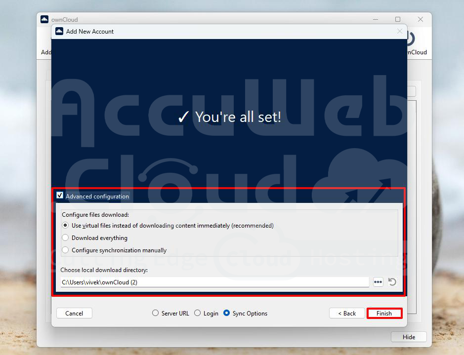 Step 5: Click ‘Finish’ to complete the setup and close the window.