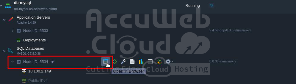 You can also access phpMyAdmin directly from your database environment. Simply click on the “Open in Browser” icon next to your Node.