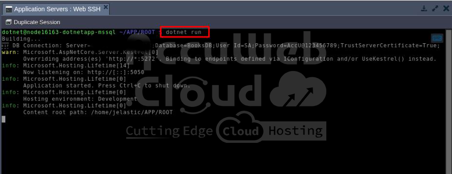 Now, your .NET Core application is set up and ready to be developed and deployed on AccuWeb.Cloud!