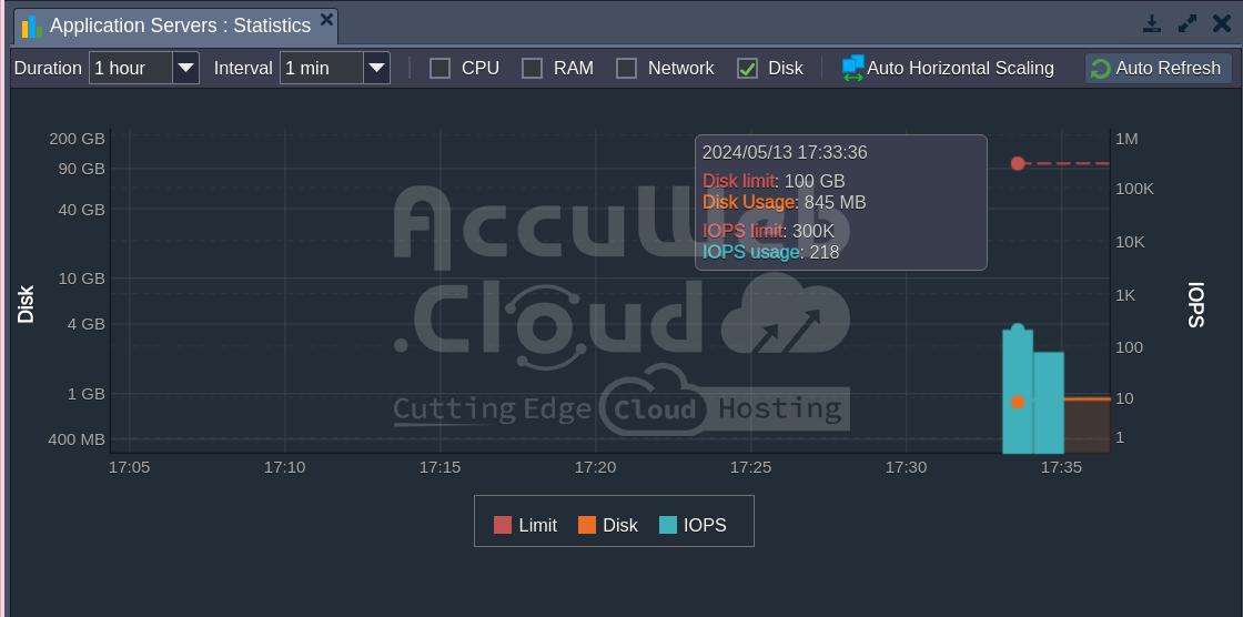 2. If you hover over a point on the Disk/IOPS graph, you’ll see a pop-up with details: