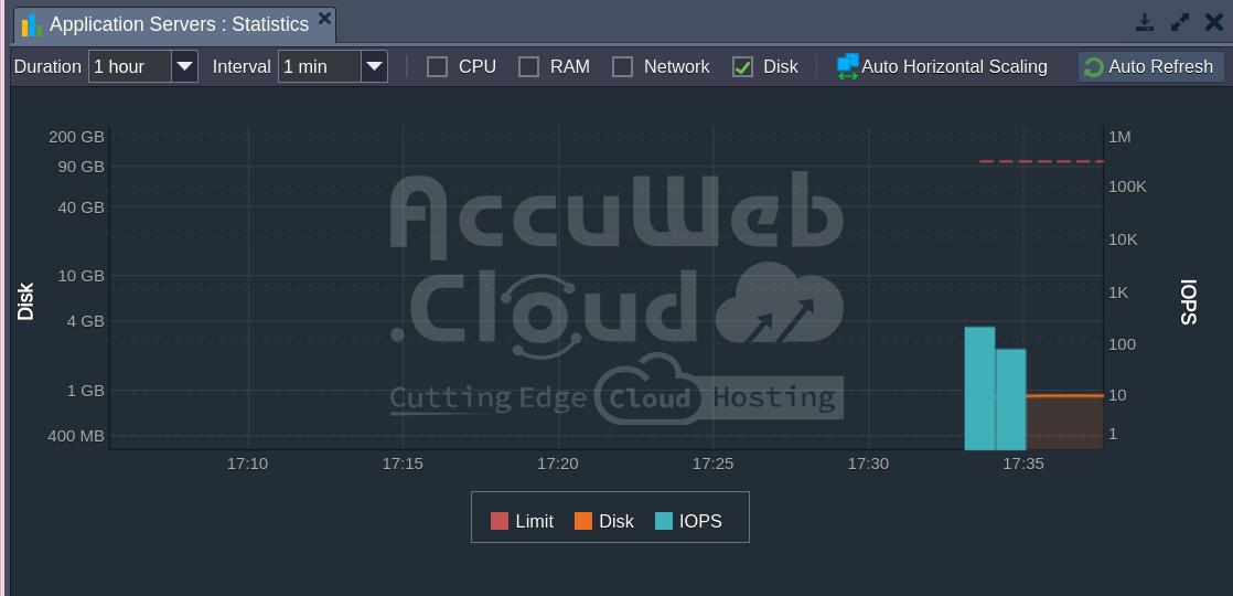 1. IOPS data is shown in the Disk stats section with its graph. We’ve focused on this because it’s what we’re most interested in: